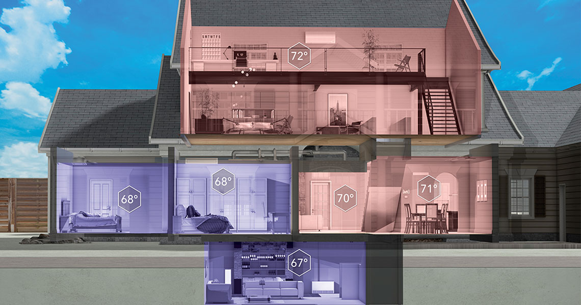 Pair your HVAC equipment with a zoning system that allows you to heat or cool multiple areas of your home separately. Pair a heat pump and zoning system for even greater efficiency. Many zoning systems are compatible with smart home assistants and can be accessed through a touchscreen hub or smartphone.